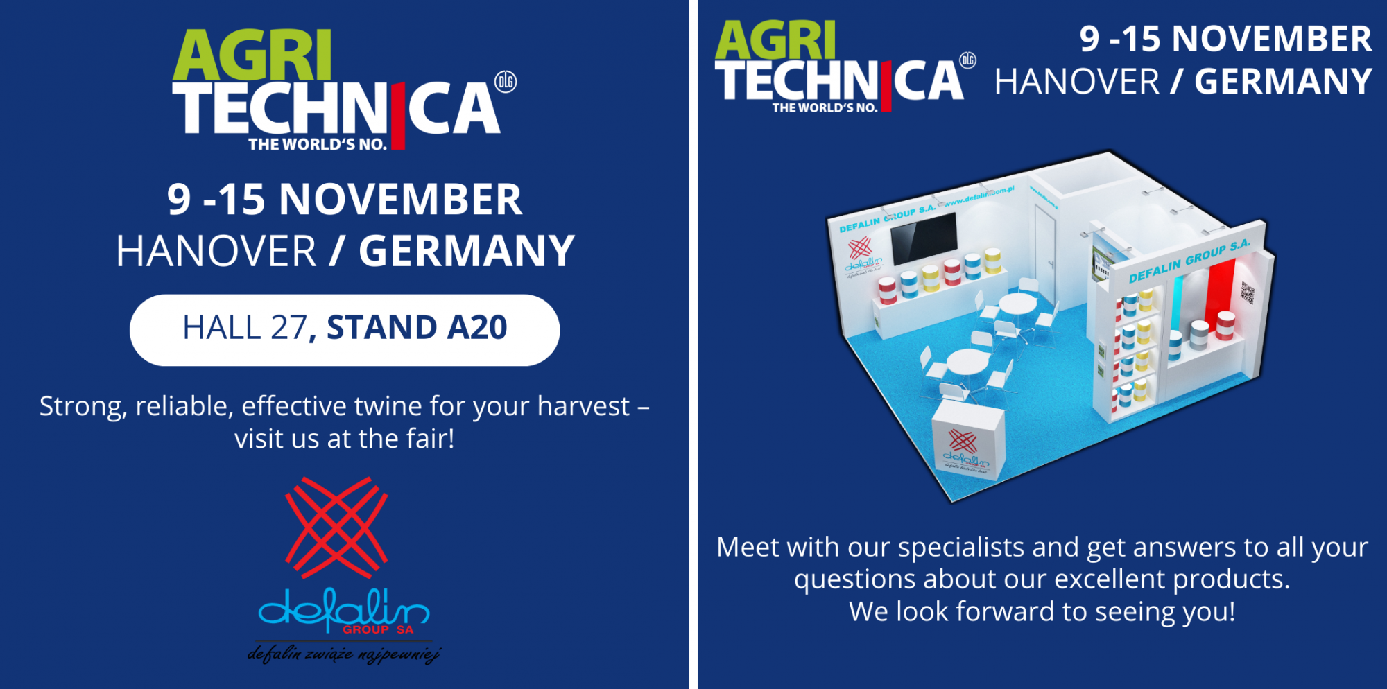 From November 9th to 15th, in Hannover, Germany, the AGRTITECHNICA trade fair will take place! DEFALIN GROUP S.A. cordially invites you to visit our booth A20 in hall 27. This is a great opportunity to discover our latest products, talk to our specialists, and get answers to all your questions. See you at the trade fair!